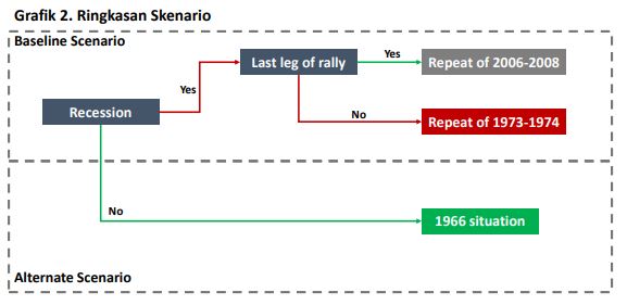 Kami melihat kecenderungan bahwa pasar secara global berpotensi mengulang pola yang mirip dengan tahun 2006-2008. Pada periode tersebut pertumbuhan ekonomi global ditopang dari negara-negara berkembang, terutama Tiongkok, sementara pertumbuhan di negara-negara maju mulai melambat dan ada risiko resesi.