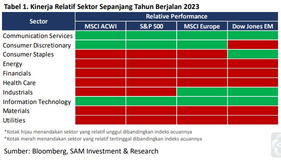 Sejak awal tahun ini, saham-saham dari sektor Teknologi, Telekomunikasi, dan Barang Konsumen Non-Primer memiliki kinerja yang paling moncer. Sementara sektor Energi, Kesehatan, Finansial dan Utilitas mengalami koreksi.