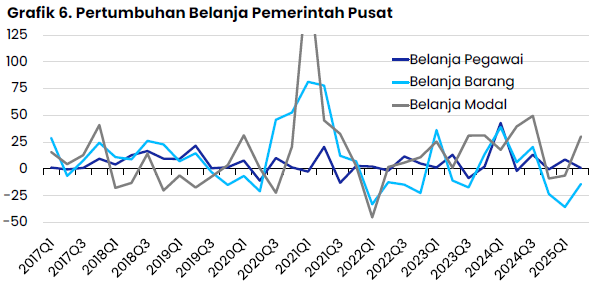 Pada Triwulan II-2025 belanja modal pemerintah tumbuh 30,28% secara tahunan, sejalan dengan tingginya impor barang modal serta tingginya pertumbuhan sektor Mesin dan Perlengkapan.