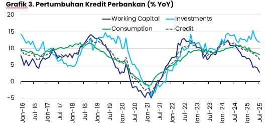 Pemotongan suku bunga juga bertujuan untuk mendorong pertumbuhan kredit perbankan yang masih dalam tren menurun selama 1,5 tahun terakhir. Kredit perbankan di bulan Juli tumbuh 6,67% secara tahunan, jauh lebih rendah dibandingkan pertumbuhan di bulan Juli tahun lalu sebesar 11,74% secara tahunan.